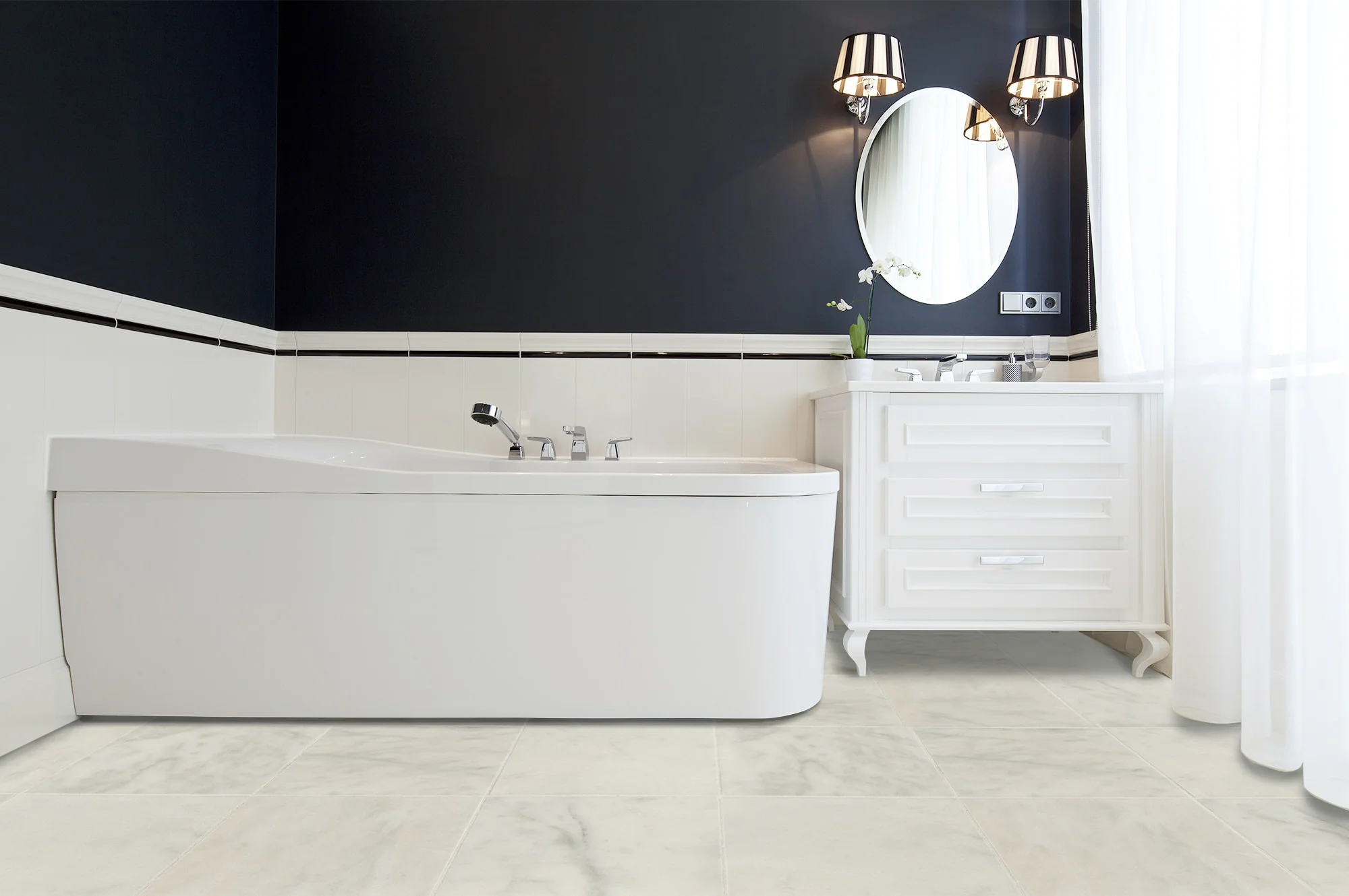 - Elegantly polished surfaces; low polish shine, accentuating the play of natural light or ambient lighting sources in any space