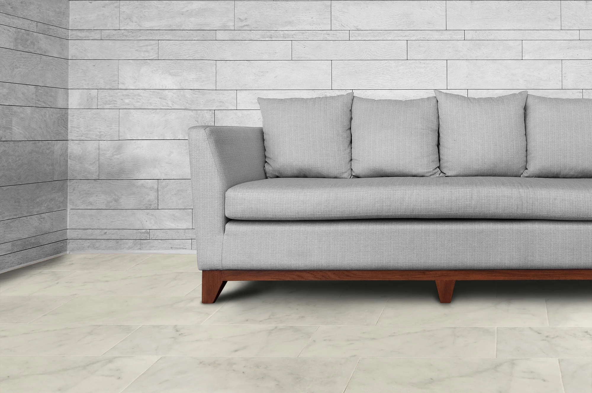 • Supremely refined, and consistent colors; strict color allowance in white marble with grey veining patterns, with yellow veining disallowed